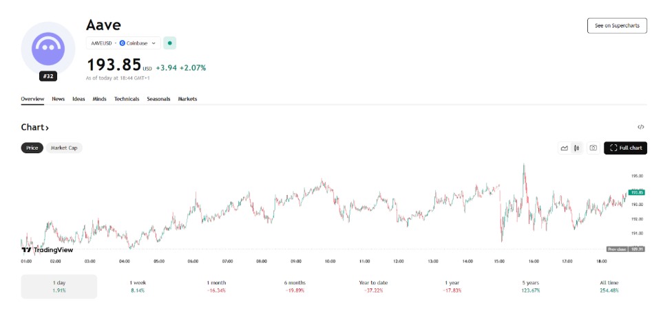 The AAVE coin price is currently trading around $194.20 with a bearish sentiment reflected across most technical indicators.