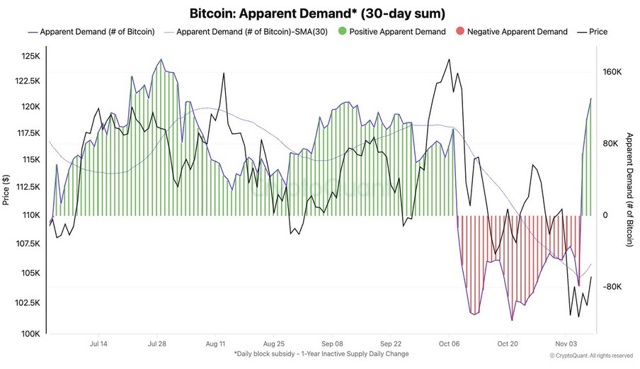 Besides, CryptoQuant’s head of research, Julio Moreno, highlighted that Bitcoin spot demand surged over the weekend, marking the first extended increase since early October. This trend reflects renewed investor confidence, especially as macroeconomic uncertainty persists.