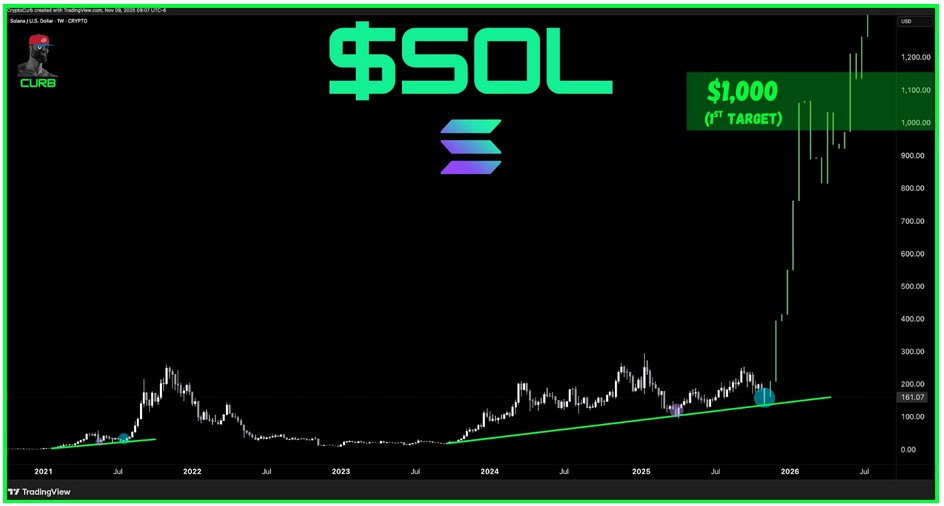 Market analysts  Curb.sol highlights Solana’s consistent respect for its ascending support base between $150 and $160, a sign of strong technical resilience. Each retest of this range has triggered renewed buying pressure, confirming investor confidence. Curb.sol predicts interim resistance at $250 and $500, and a future target of around $1,000. This optimistic view is further supported by the flow of developers and projects shifting to Solana because of its low fees and scalability.