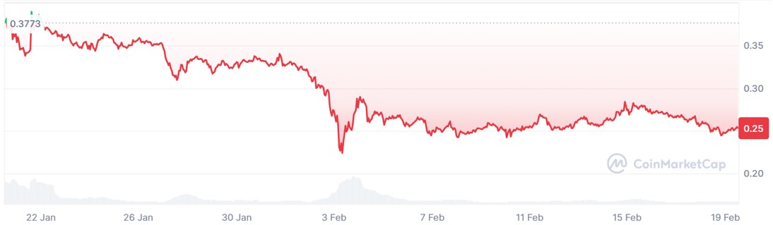 The Dogecoin price has hit a critical level at $0.25, testing the resolve of long-term holders. Dogecoin is still rightly regarded as a meme coin, and the price has declined by 30% in the past month while weekly transaction volumes have seen a 70% drop-off. This steep fall reflects broader market instability, where low liquidity and reduced whale activity intensify the situation.