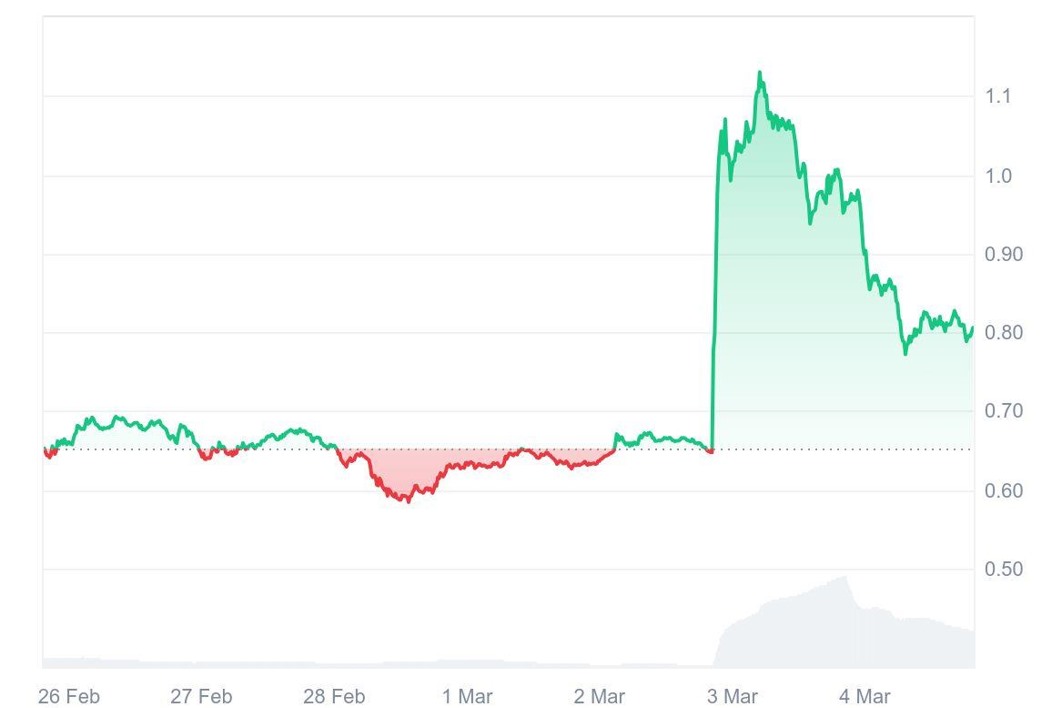This sudden increase in the Cardano price is due to its possible addition to the national crypto reserve of the United States. From a weekly perspective, the ADA token has soared more than 20% in value.