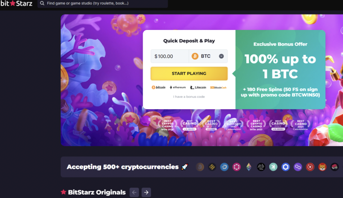 BitStarz supports over 500 cryptocurrencies, including popular options like Bitcoin (BTC), Ethereum (ETH), Litecoin (LTC), and niche cryptocurrencies like Ripple (XRP). Stellar (XLM), Chainlink (LINK), etc. This makes online gambling accessible to a wider range of players.