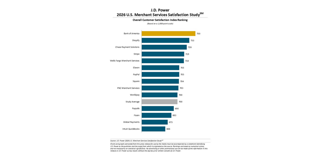 TROY, Mich.--(BUSINESS WIRE)--Rising consumer interest in digital wallets, debit and credit cards, BNPL and even cryptocurrency has small business owners accepting more forms of payment than ever before, which puts third-party merchant services providers at the center of their livelihoods. According to the J.D. Power 2026 U.S. Merchant Services Satisfaction Study,SM released today, the manner and speed with which transactions are processed, as well as the ability to manage costs and avoid software and hardware glitches, have become critical drivers of satisfaction with merchant services providers.