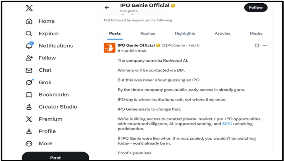 It flips that script. It gives everyday people access to elite-class deals in the pre-IPO stage. IPO Genie uses AI Sentient Signal Agents to scan and filter pre-IPO private deals before mainstream attention hits. The Redwood AI reveal is a proof point flagged early, confirmed later.