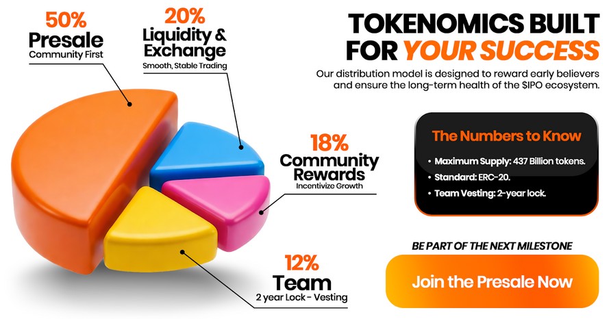 These tokenomics make $IPO one of the best utility-focused presale tokens 2026 to watch.