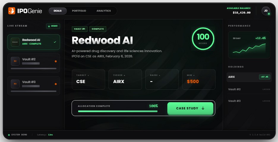 IPO Genie’s AI Vault is more than just ideas; it actually works. Take Redwood AI Corp. (CSE: AIRX), a company in AI and Life Sciences that went public on February 6, 2026. Normally, regular investors miss out on the biggest gains because big VCs and institutions get in first.