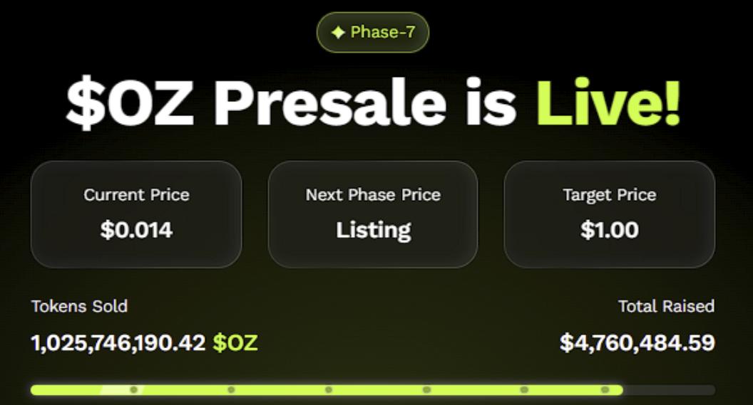 One of the strongest indicators supporting Ozak AI’s 2026 supercycle forecast is its early fundraising success. The project has already raised over $4.7 million and sold more than 1 million tokens, demonstrating powerful investor conviction even before its official exchange listing. Early-stage demand of this scale echoes the same patterns seen in some of the biggest breakout tokens from previous cycles.