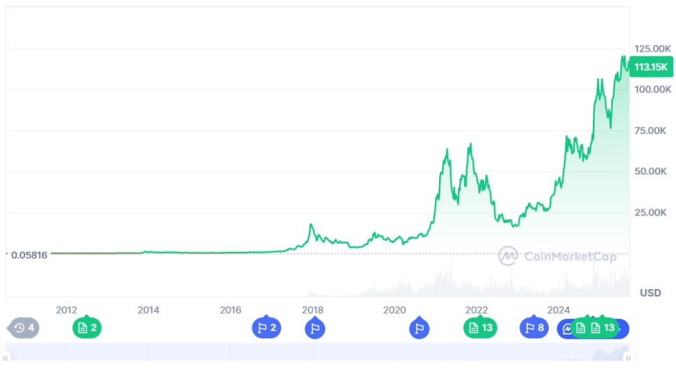 Bitcoin is currently worth $113,155, down 2.42% in the past week. The price has also fallen compared to a month ago (-1.47%). When considering its all-time high, BTC is currently down by 9.07%.