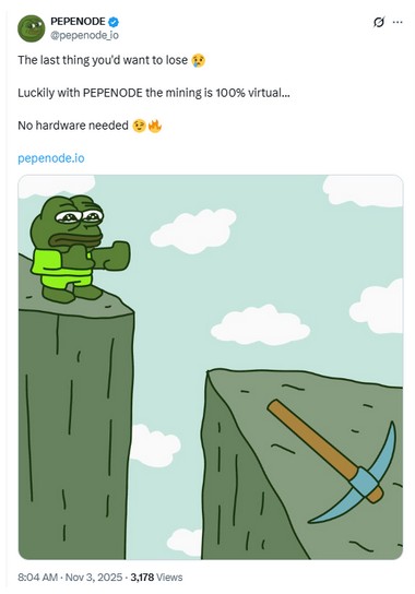 Our presale crypto list 2025 ends with PepeNode, a project that offers a hardware-free way to mine and earn crypto rewards. It turns mining into a virtual simulation game, eliminating concerns about electricity costs and equipment maintenance. Instead, users’ focus is on expanding their virtual mining setups.