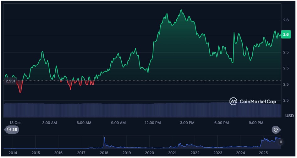 XRP trades near $2.60 right now after a choppy week, while bitcoin steadies and keeps risk appetite alive. ETF demand is part of the story. CoinShares reported a record $5.95 billion of global crypto ETF inflows for the week ending October 4, with $219.4 million going to XRP products. That backdrop supports rebounds after pullbacks and helps liquidity during volatile sessions.
