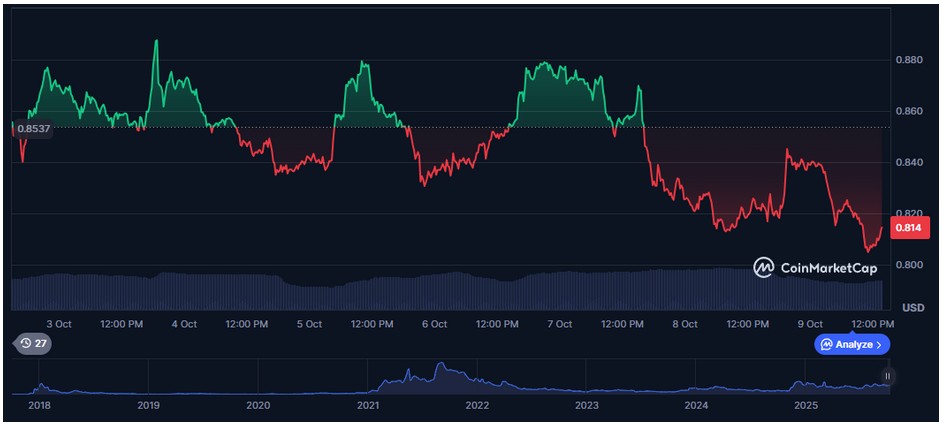 In fact, Cardano has lost nearly 5% in the past week. Despite bouncing back to $0.88 a couple of times during this period, it has since dipped to $0.81, where it remains at the time of writing this article. While the latest Cardano price prediction points to a bounce back to $1 in the near future, ADA is not a candidate for the highest Uptober gains in 2025.