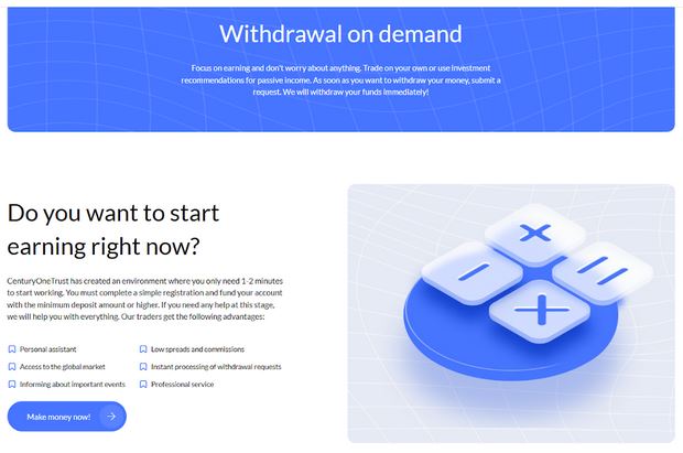 - Streamlined Profit Withdrawals: Withdrawing profits is simple and efficient on CenturyOneTrust.com. The platform provides various withdrawal options, allowing users to quickly access their funds after profitable trades.