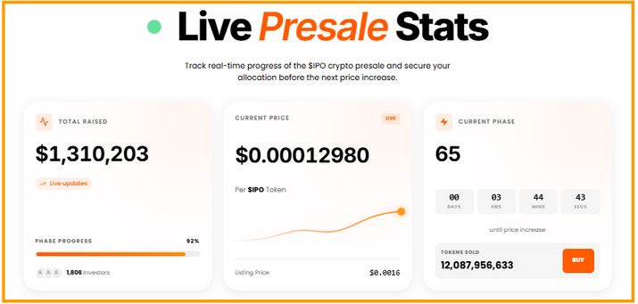 - Staking Rewards: While holding $IPO, investors can earn passive income, making it an attractive long-term hold.