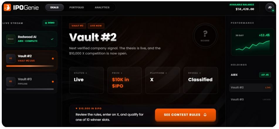It is a WEB3 AI-powered platform that finds private companies before they go public and gives everyday investors access to those deals starting at just $10. No banker. No broker. No minimum net worth required.