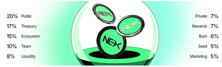 Nexchain is an AI-powered Layer 1 blockchain. In simple terms, it is building the foundation that other crypto projects can sit on top of. It processes up to 400,000 transactions per second, which is extraordinarily fast compared to most blockchains today. Fees cost just $0.001 per transaction. Check out the token allocation in the image below.