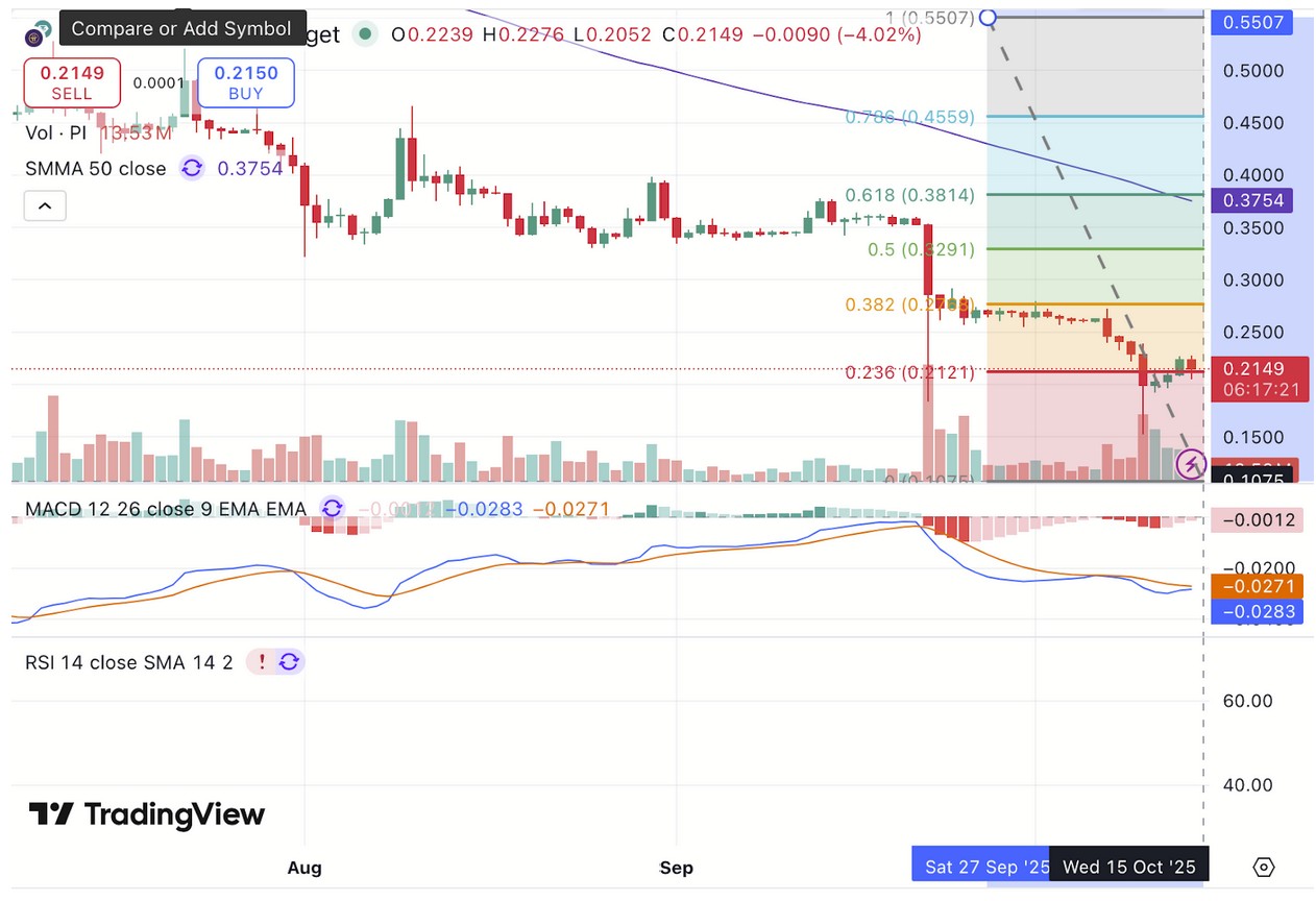 Pi Network (PI) has lost about 92.7% since hitting an all-time high of $2.98 in February. The asset, currently selling at $0.21, has slumped by 14.06% in the past week amid the ongoing market downtrend.