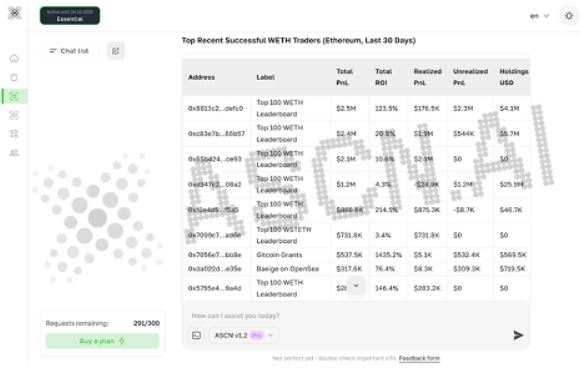 By registering, you can test ASCN and make 5 free requests. You can ask, for example, “Track where funds reinvested profits after exiting (TOKEN): transfer sequences → new positions” or, for example, “Give 3 scenarios for the development of the cryptocurrency market in the next 12 months and how to optimize the investment portfolio for each of them.”