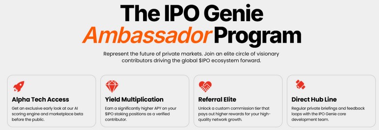 IPO Genie $IPO just launched its Ambassador Initiative as part of the 2026 roadmap. It is all about growing a strong worldwide community. You become an ambassador by joining the Community Hub and doing simple verified activities.
