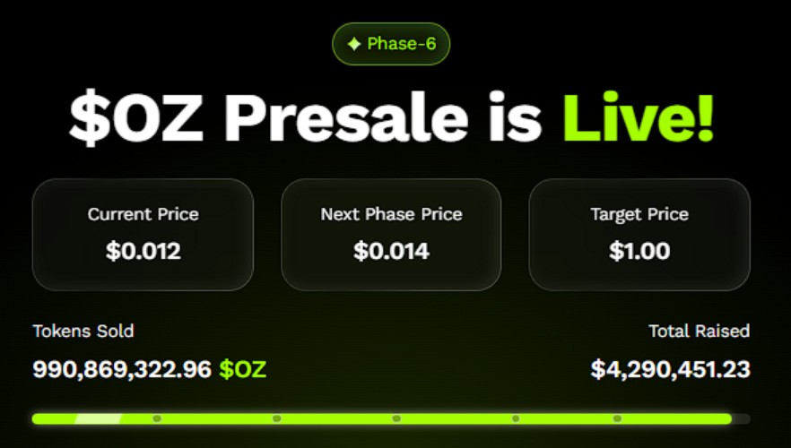 Ozak AI is redefining the meaning of utility in crypto. Currently in its 6th OZ presale stage at $0.012, Ozak AI has already raised over $4.2 million and sold more than 980 million tokens—a strong indicator of investor demand. Its foundation rests on a powerful concept: AI-powered prediction agents. These agents analyze massive amounts of market sentiment and blockchain data to produce real-time insights, forecasts, and automated trading strategies for investors.
