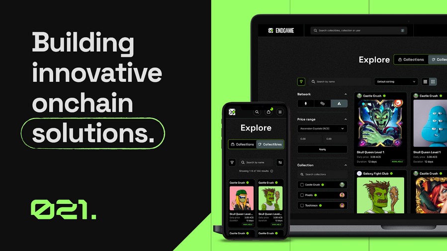 Endgame emerges as the first product under the new 021 brand, offering a state-of-the-art NFT rental marketplace for NFTs. With collateral-free rentals powered by smart contract wallets and no required integrations, Endgame stands as our latest iteration in NFT rentals. Audited by C4 and initially launching on Ethereum and Polygon, it exemplifies our commitment to creating scalable, secure, and user-centric platforms.