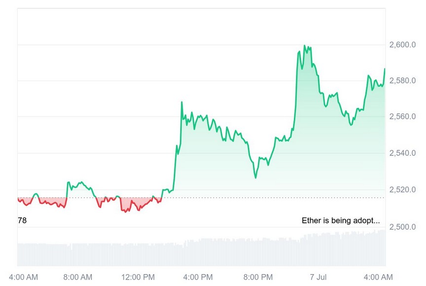 Strong inflows into Ether ETFs have been a key catalyst for Ethereum’s growth. This year alone, more than $1.5 billion has been raised, and by the end of 2025, it is expected to reach $10 billion. This growing institutional demand makes ETH more likely to do well in the long term. Then, there’s the growing Layer 2 ecosystem. Rollup networks, such as Arbitrum and Optimism, have helped reduce gas costs and facilitate the scaling of transactions. Meanwhile, more ETH is being staked, which tightens the circulating supply and adds upward pressure on the price. Macro predictions suggest that Ethereum will target $5,791 first, before reaching $8,500 by the end of the year. The rounded bottom formation, which has been in place since April, supports this bullish scenario. ETH hasn’t posted a new high since March 2024, but the technical structure now points to an imminent breakout. Once $2,560 is cleared, ETH could enter a new uptrend phase, mirroring previous bull cycles.