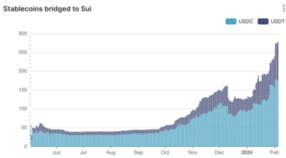 According to the Wormhole data, most of these bridged assets are stablecoins, with USDC and USDT bridged to Sui accounting for over $140M and $93M of the volume respectively.
