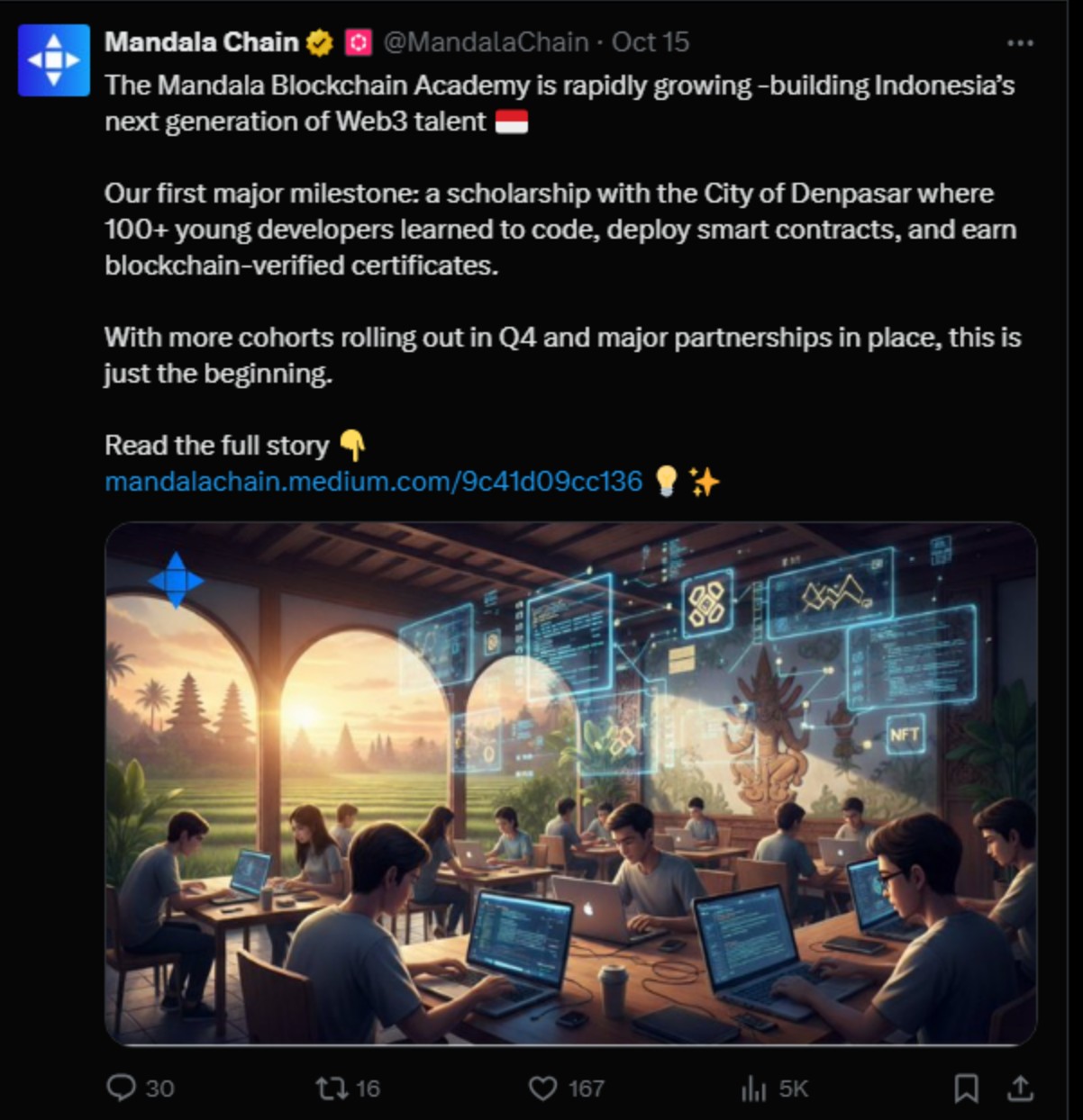 Mandala Blockchain Academy is developing Indonesian talent in Web3, offering over 100 developers a scholarship program with the City of Denpasar. It is from this formidable foundation that Mandala Chain is gaining momentum as a decentralized solution built on Polkadot and powered by Substrate.