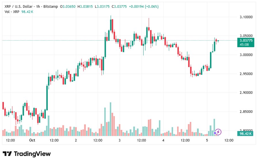 At press time, Ripple’s XRP has decisively reclaimed the $3 psychological level. This move may mark the start of a larger October rally. Traders are watching the $3.10–$3.30 band as the near-term battleground. A sustained break above that zone could open targets toward the low-$4 area if momentum continues.