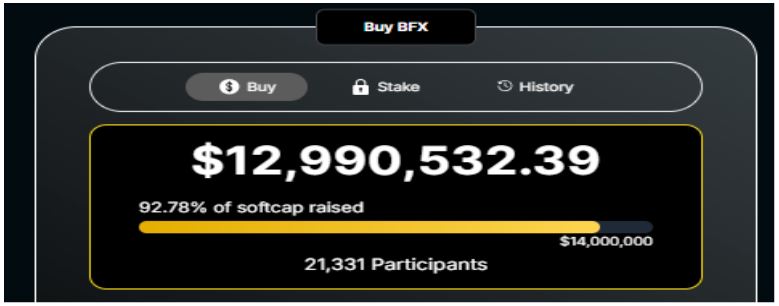 | BlockchainFX ($BFX) | Unified trading platform across markets | Analytics and trade tooling | Fees, platform functions | Marketed as a presale with staking | Markets offer fee-based payouts for holders | Product delivery, trading volumes |
