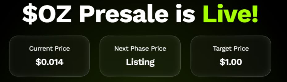 3) Ozak AI ($OZ) – 1 $OZ = $0.014