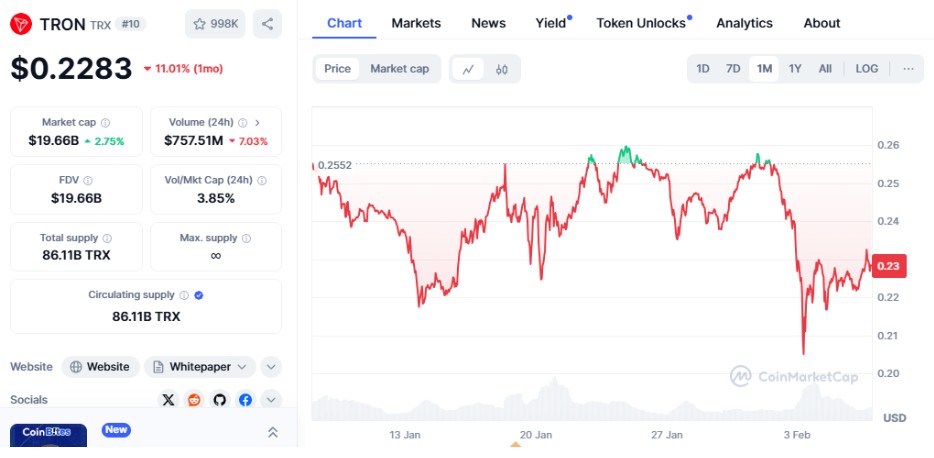 Growing dApp Ecosystem: Tron has one of the most important and most energetic dApp ecosystems, competing with Ethereum and Binance Smart Chain in DeFi and gaming. Strong Market Presence: With a consistent top-rating role in marketplace capitalization, Tron stays a key player in the blockchain industry.