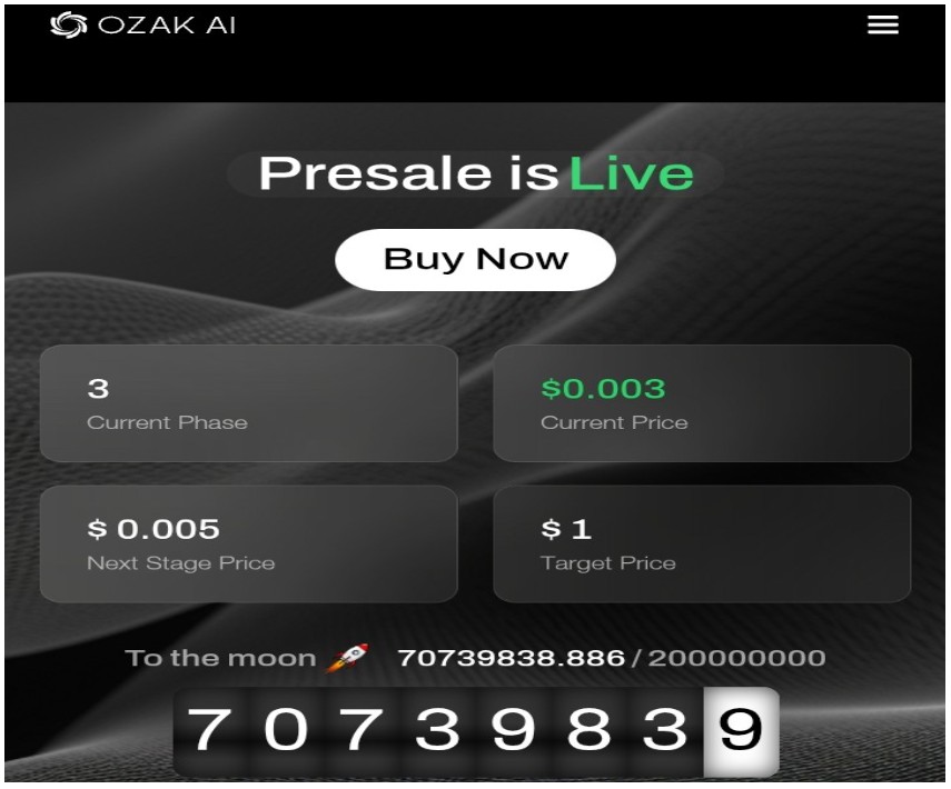 The 3rd stage of the Ozak AI presale is going on, and the project is already making waves in the crypto community. With an impressive $700K raised so far, Ozak AI tokens are currently priced at just $0.003 each, with the next stage price set at $0.005. This early-stage opportunity is poised for significant growth, with projections suggesting that the token could reach $1 by 2025.