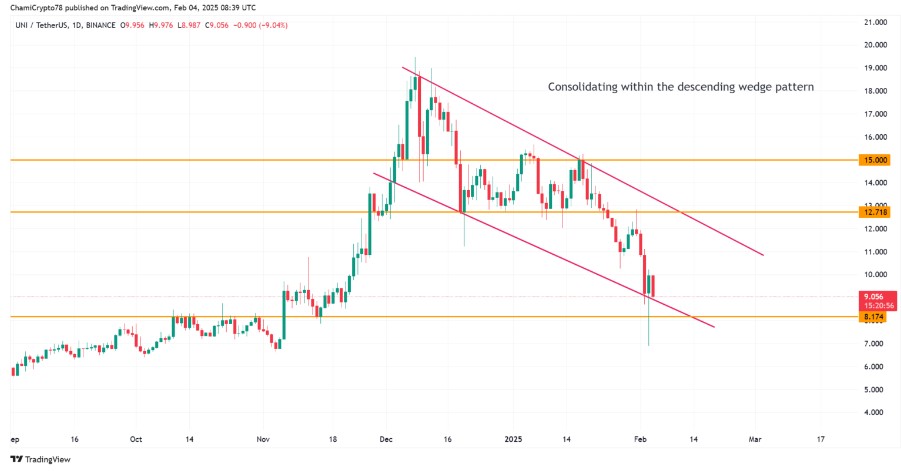 At the writing time, Uniswap was trading at $9.31 with an overall bearish sentiment in the market. The token is currently trading at descending wedges, if a breakout above the descending wedges occurs, the price might soar to $12.71 or $15. However, a further decline will see the token holding at the $10 support zone.