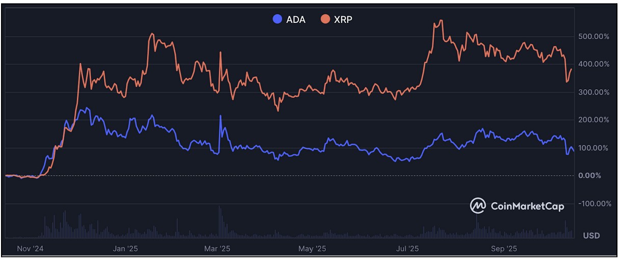 XRP and Cardano might get their ETF approvals and see some gains, but their billion-dollar market caps limit potential for growth. A 2X move needs unrealistic capital inflows.