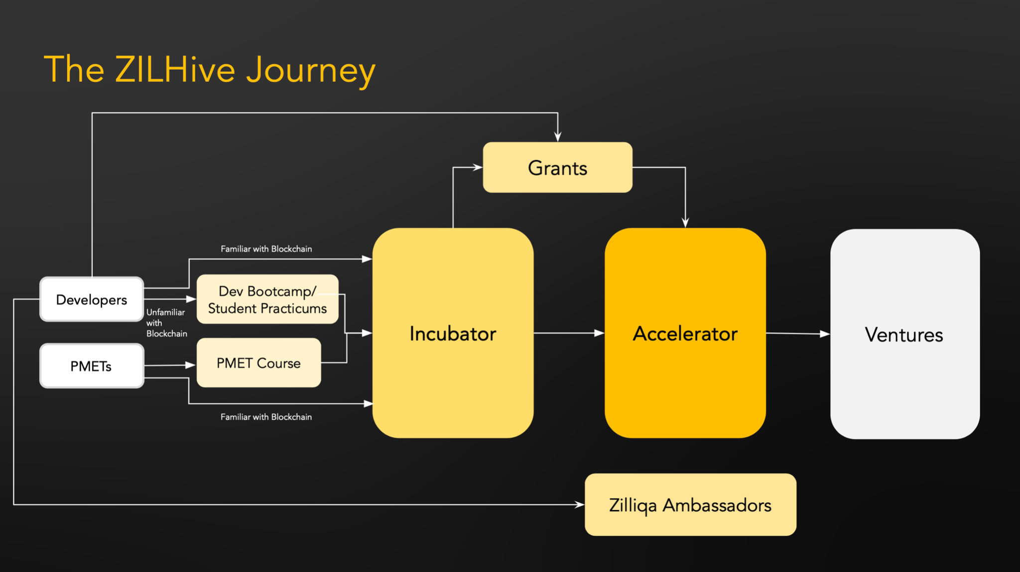 ZILHive is Zilliqa’s ecosystem growth arm which supports entrepreneurs and developers as they build their solutions on Zilliqa’s high-performance, high-security blockchain and smart contract platform. ZILHive comprises three pillars: Education, which focuses on upskilling professionals and students through customised blockchain courses developed in partnership with educational institutions; Grants, a funding programme which offers strategic, personalised guidance to early-stage start-ups; and Accelerator, an initiative that provides technical tutorship and mentorship to drive growth across the Zilliqa network. Enabled by this three-pronged ecosystem effort, ZILHive is driven by a mission to build a holistic global community of developer and entrepreneurial talent. To date, ZILHive has supported over 70 projects from over 20 countries.